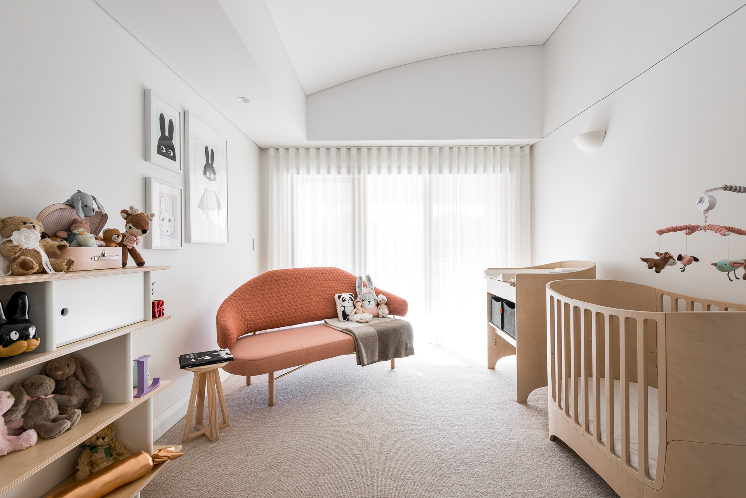 A feature timber screened balcony off the master suite punches though the steel portal frame again creating interest but also a lockable facade. The timber box has built in bi-folds which open to views of Claremont but can also be a private parents retreat. The flying roof form provides shade to the 'entertainers delight', a large open roof deck (engineered to take a future spa) which takes full advantage of river glimpses to the south, the City to the east.